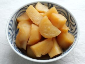 適度な煮崩れ感でやわらかくなる分、煮汁の味がよくしみ込みます。